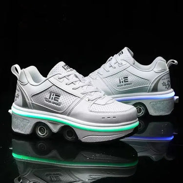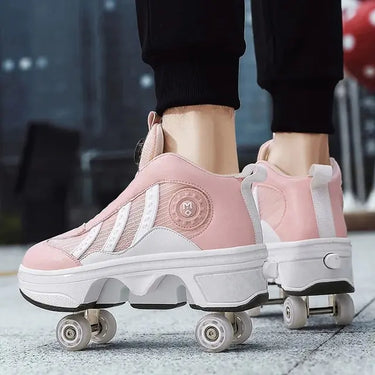 Unlock Your Inner Skater with Transforming Roller Skate ShoesExperience the thrill of gliding effortlessly on wheels with our innovative transforming roller skate shoes. These shoes seamlessly switch from regular footwear to roller skates, letting you transition from walking to skating in seconds. Imagine the freedom of movement and the fun of skating, all while wearing your favorite pair of shoes.Step Up Your Commute Game with Style and SpeedSay goodbye to mundane walks and hello to an exhilarating commute. Our transforming roller skate shoes not only save you time but also add a dash of excitement to your daily routine. Whether you're heading to work, school, or just out for a stroll, these shoes provide a unique and stylish way to get around, turning heads wherever you go.Transform Your Everyday Walk into an AdventureWhy settle for ordinary when you can have extraordinary? With our transforming roller skate shoes, every step becomes an opportunity for adventure. Effortlessly switch between walking and skating to explore your surroundings in a whole new way. Perfect for urban explorers and thrill-seekers alike, these shoes add a sense of fun to your everyday life.Experience Unmatched Convenience and VersatilityImagine having the convenience of a comfortable shoe combined with the excitement of roller skates. Our transforming roller skate shoes offer the best of both worlds, making them perfect for various activities. From quick errands to leisurely skates in the park, you'll enjoy the versatility and ease of these revolutionary shoes, designed to keep up with your dynamic lifestyle.