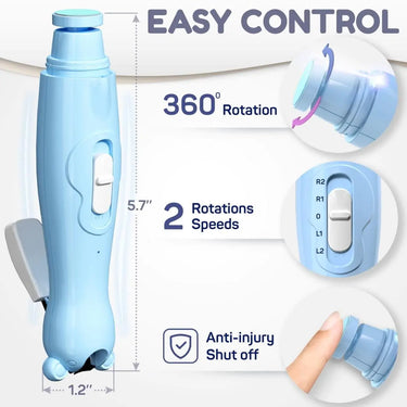 MORE CONTROL FOR SOFT AND SAFE TRIMMING: Set a slow grinding speed for babies or fast for adults. Select clockwise or counterclockwise rotation depending on what hand you are going to trim. Make the nails smoother without damaging the cuticles with a special protecting feature. USB RECHARGEABLE: A powerful battery for up to 3 hours of work on a full charge. An included USB cable for quick recharging. Powers from a laptop, power bank, or outlet. EASY TO USE AND STORE: Trim baby's nails whenever it feels comfy for your kid and you. Select the desired mode with a touch of a button. Easy to store in a bag. Doesn't take much space.
